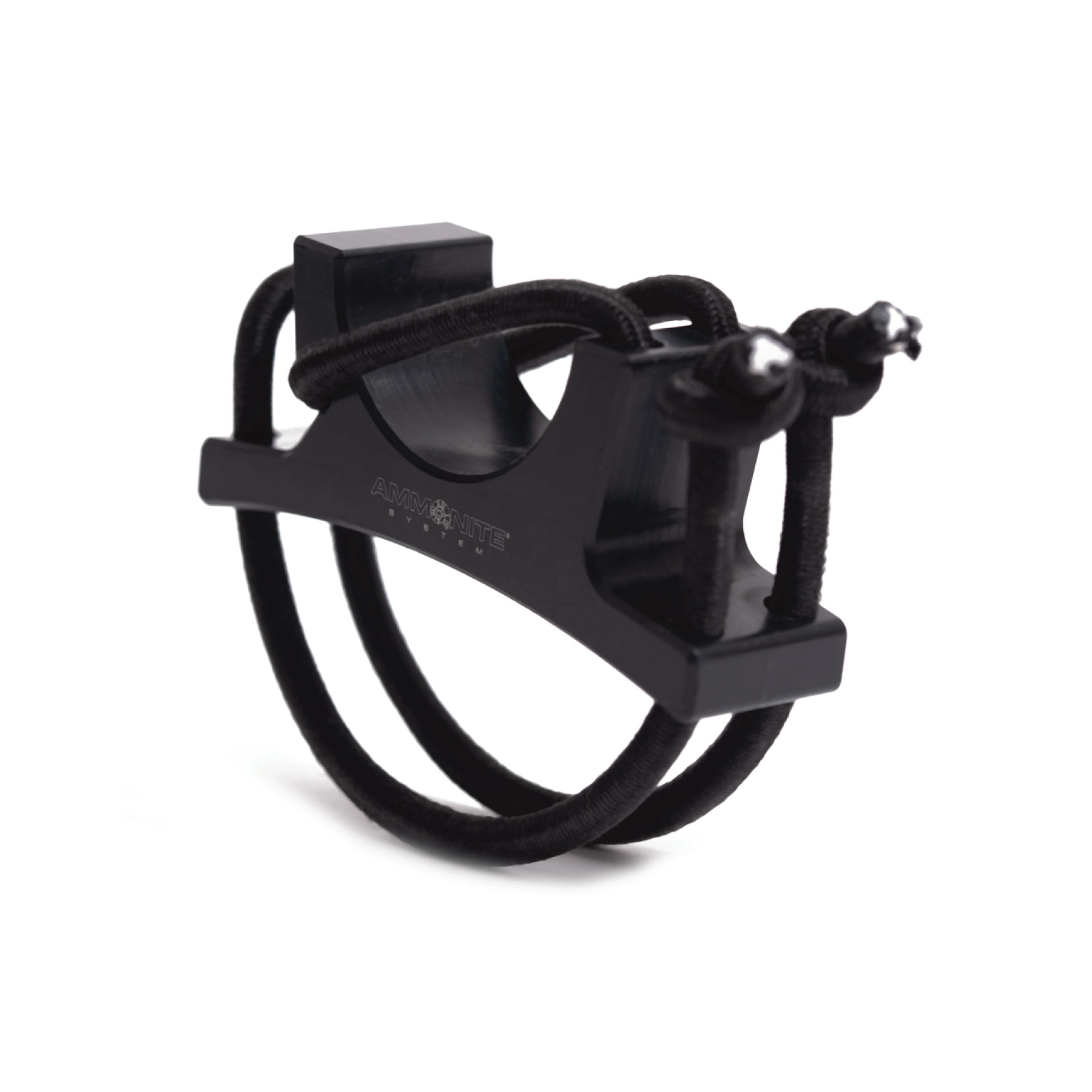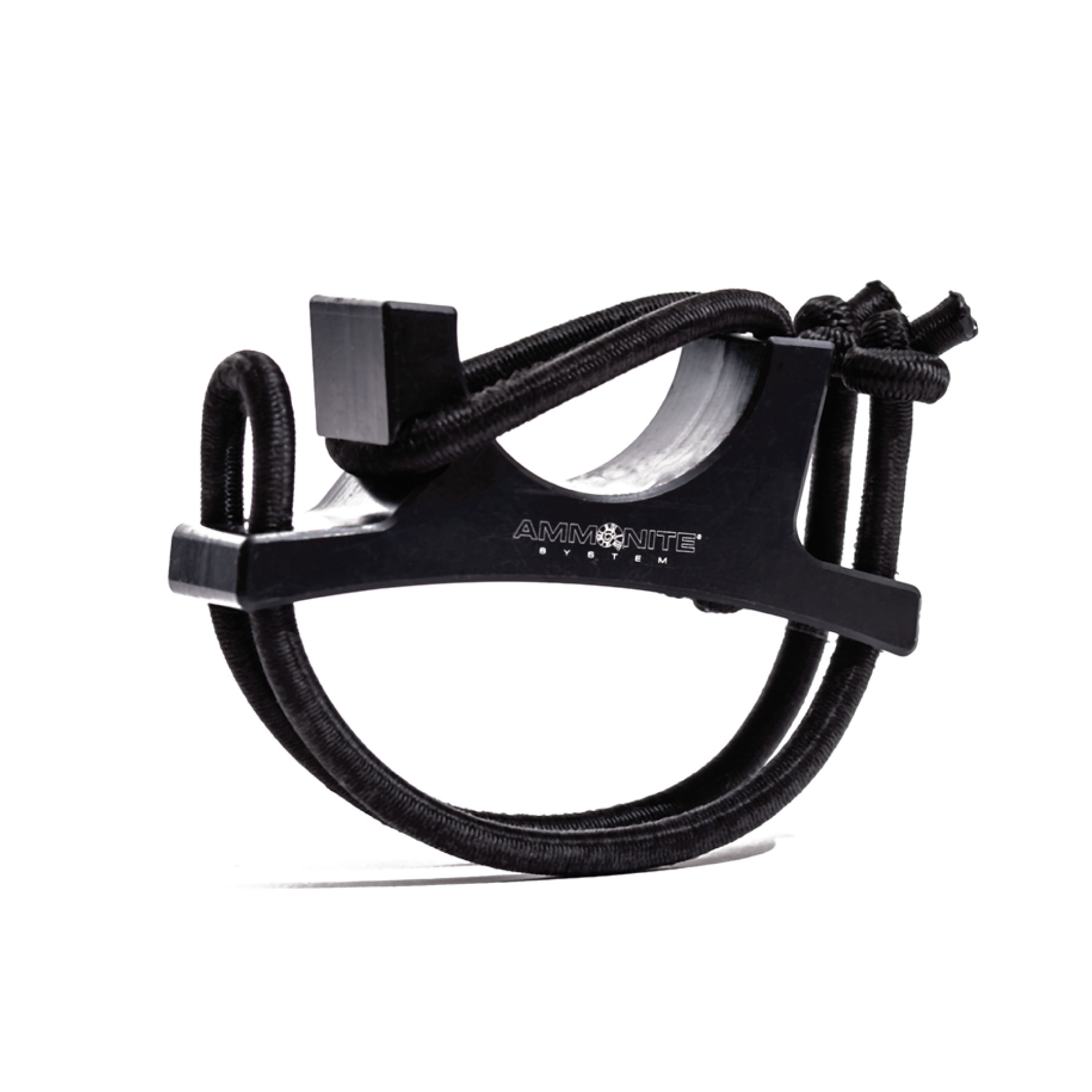 SIMPLE CONSTRUCTION: The Ammonite Soft Goodman Handle comprises three elements. Its body is machined from a solid piece of Delrin®, a highly rigid and durable thermoplastic, combined with two flexible bungee rubber bands. One band is used to secure the light, while the other ensures the handle stays firmly in hand. Thanks to the flexible bungee rubber, the grip adjusts to the shape of the user’s hand, leaving them free for operation.