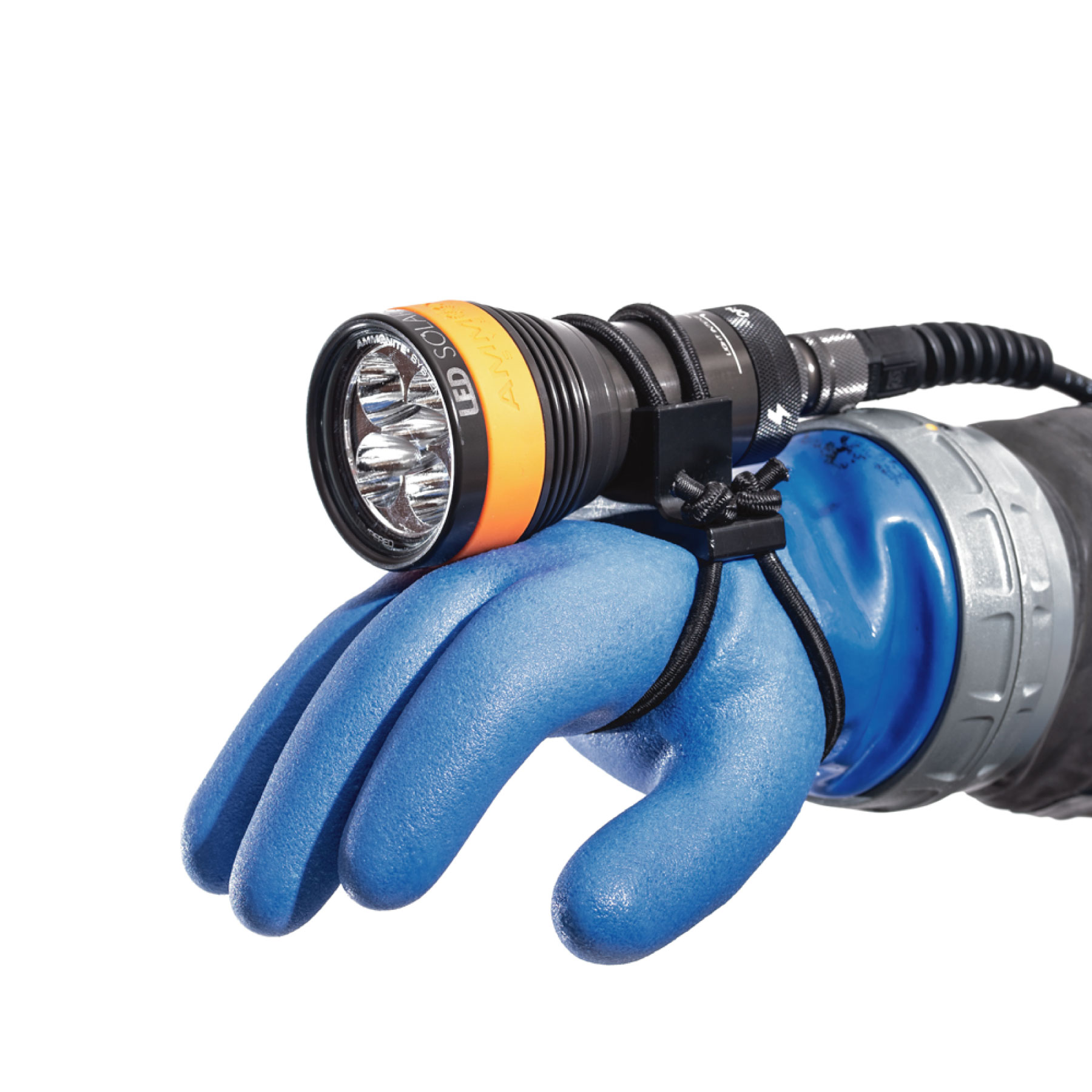 ORIGINAL SOLUTION: The Ammonite Soft Goodman Handle is an original solution from Ammonite Systems, quickly gaining approval from divers for its flexibility and ease of configuration. The fastening of an umbilical light in the handle is straightforward and doesn’t require additional tools. You can adjust the loop size simply by tying a knot. Plus, the Goodman Handle Soft comes with AMMOPOWER – an extended three-year warranty.