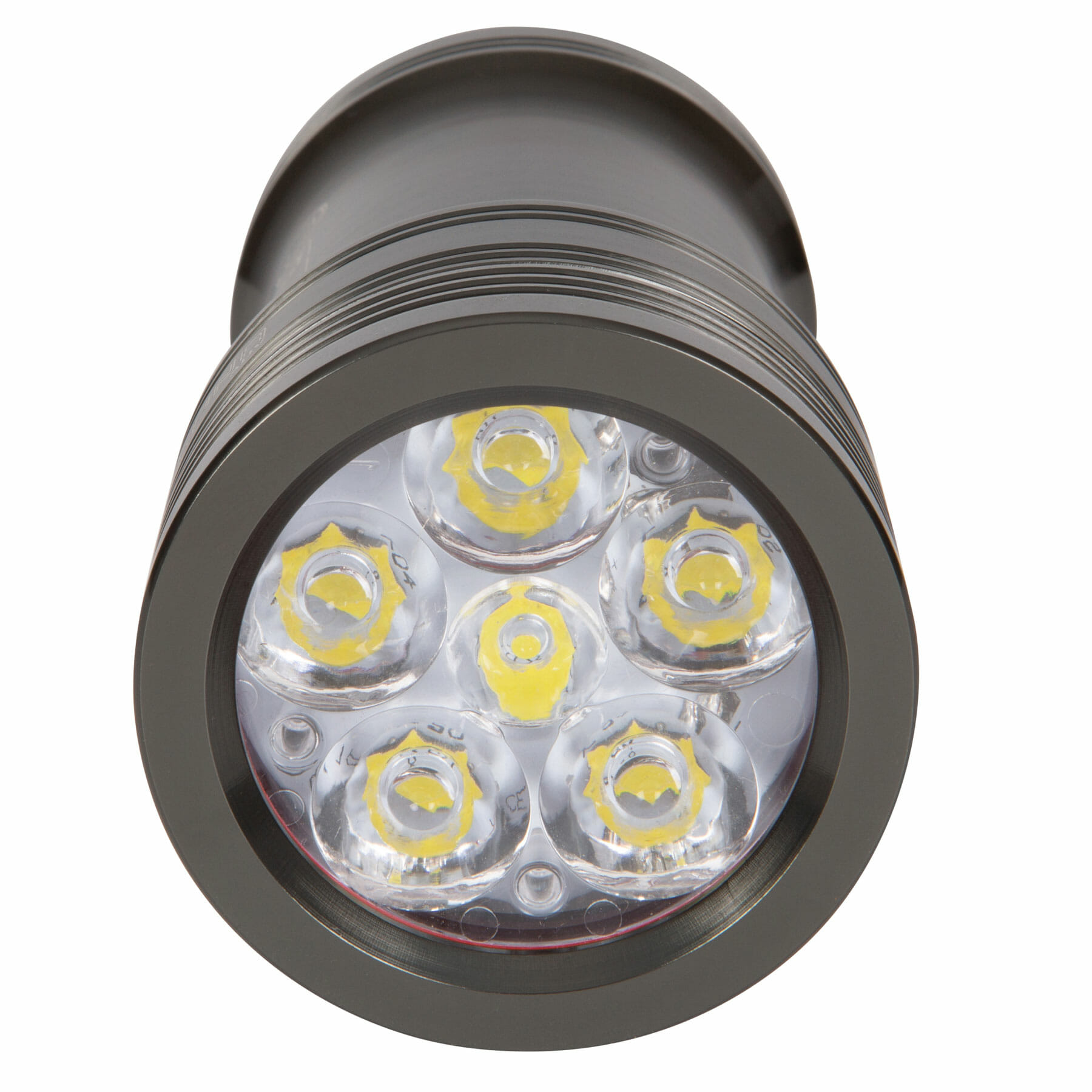 This is one seriously powerful torch. It kicks out 3600 lumens and has user-programmable settings so you can get the best run time for the type of dive you are doing.