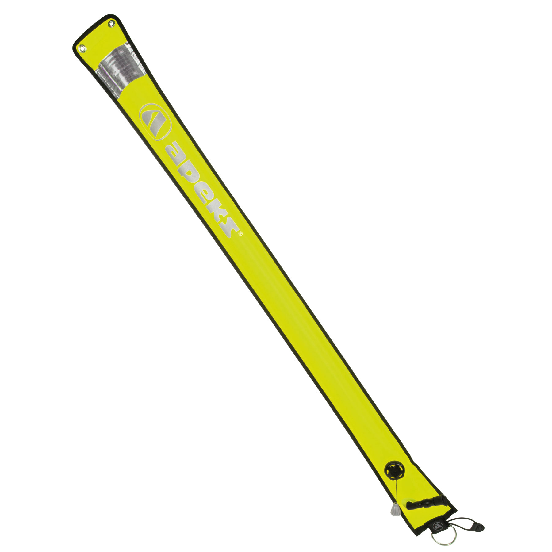 - 2 x brass eyelets at the top of the Apeks SMB allow you to attach a torch, strobe or slate, they also enable the SMB to be folded and used as an emergency float.