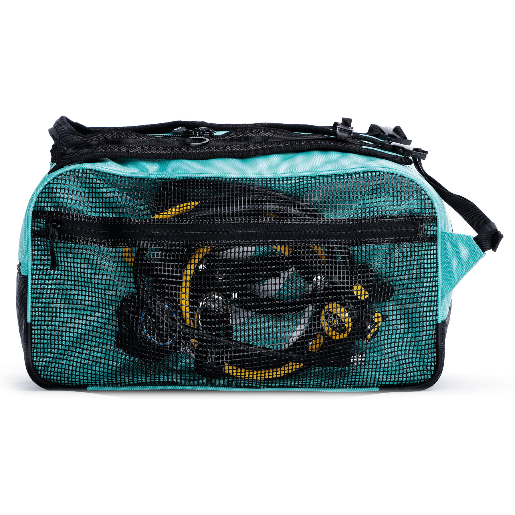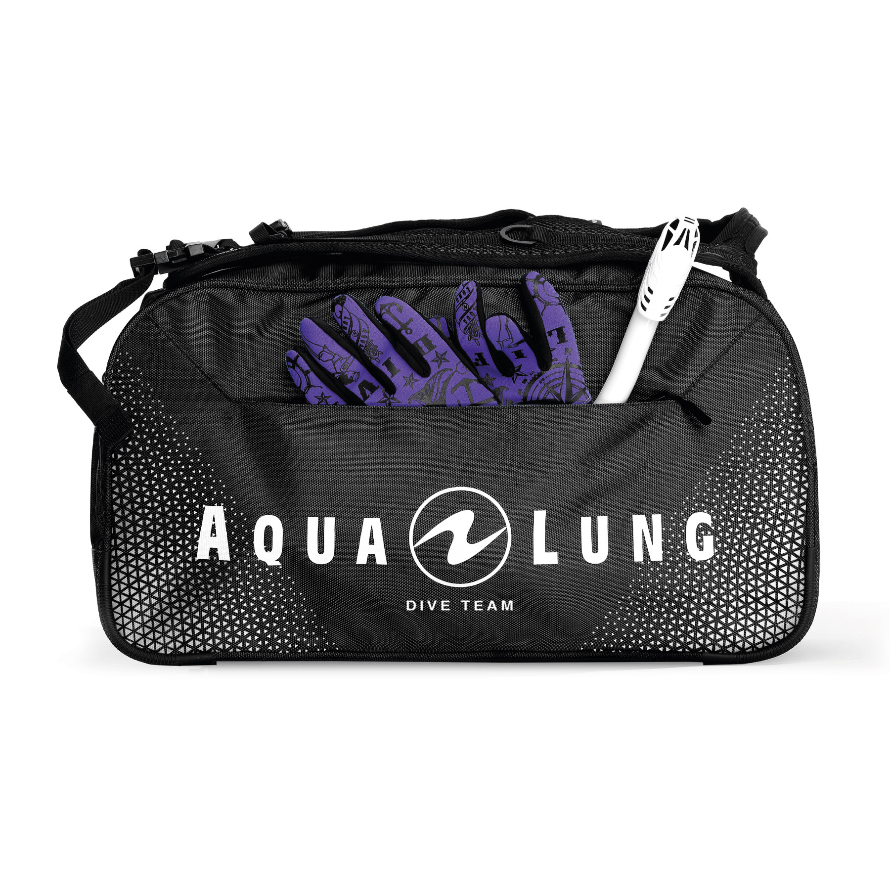 - Designed for Scuba and snorkelling Dry your wet accessories while you travel in the Aqualung Duffel Pack’s mesh drying pocket. Fin straps on the back of the bag hold any size fin. Protective Internal padding gives the bag shape and protects your gear. Protective V-diamond base and six corner guards. Zippers accommodate locks