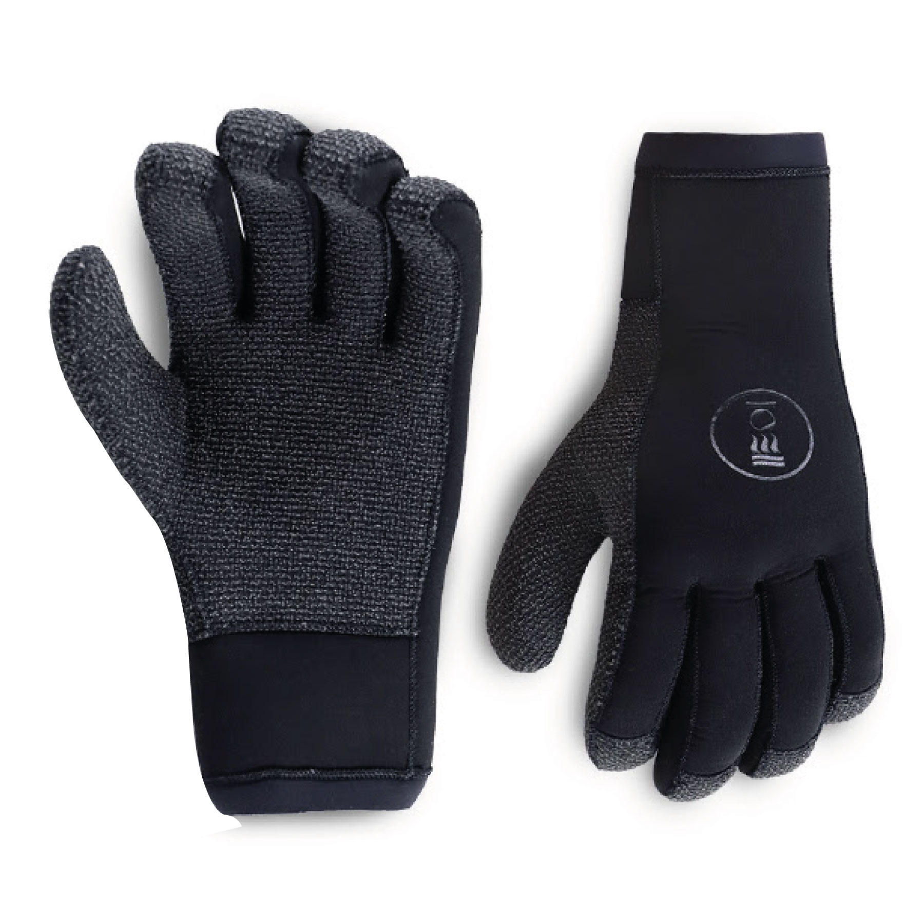 The Fourht Element 5mm kevlar gloves combine 4mm Kevlar reinforced fabric across the palm, fingertips and thumb, with 5mm stretch neoprene across the back of the hands.