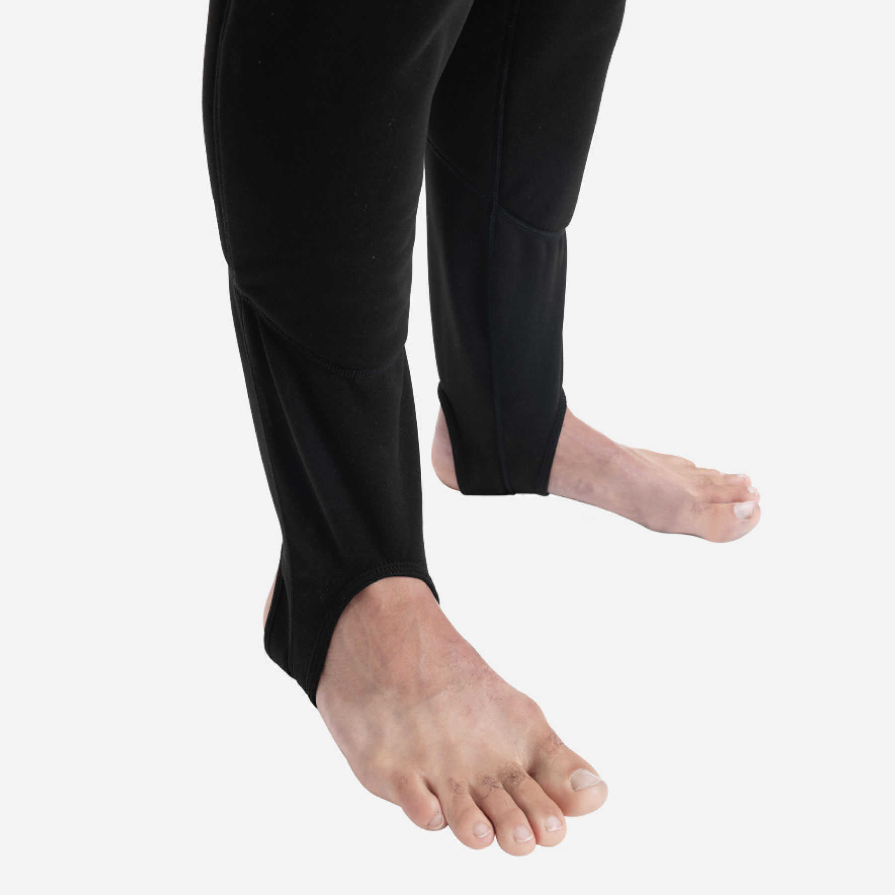 • Thumb loops and foot stirrups to aid donning.