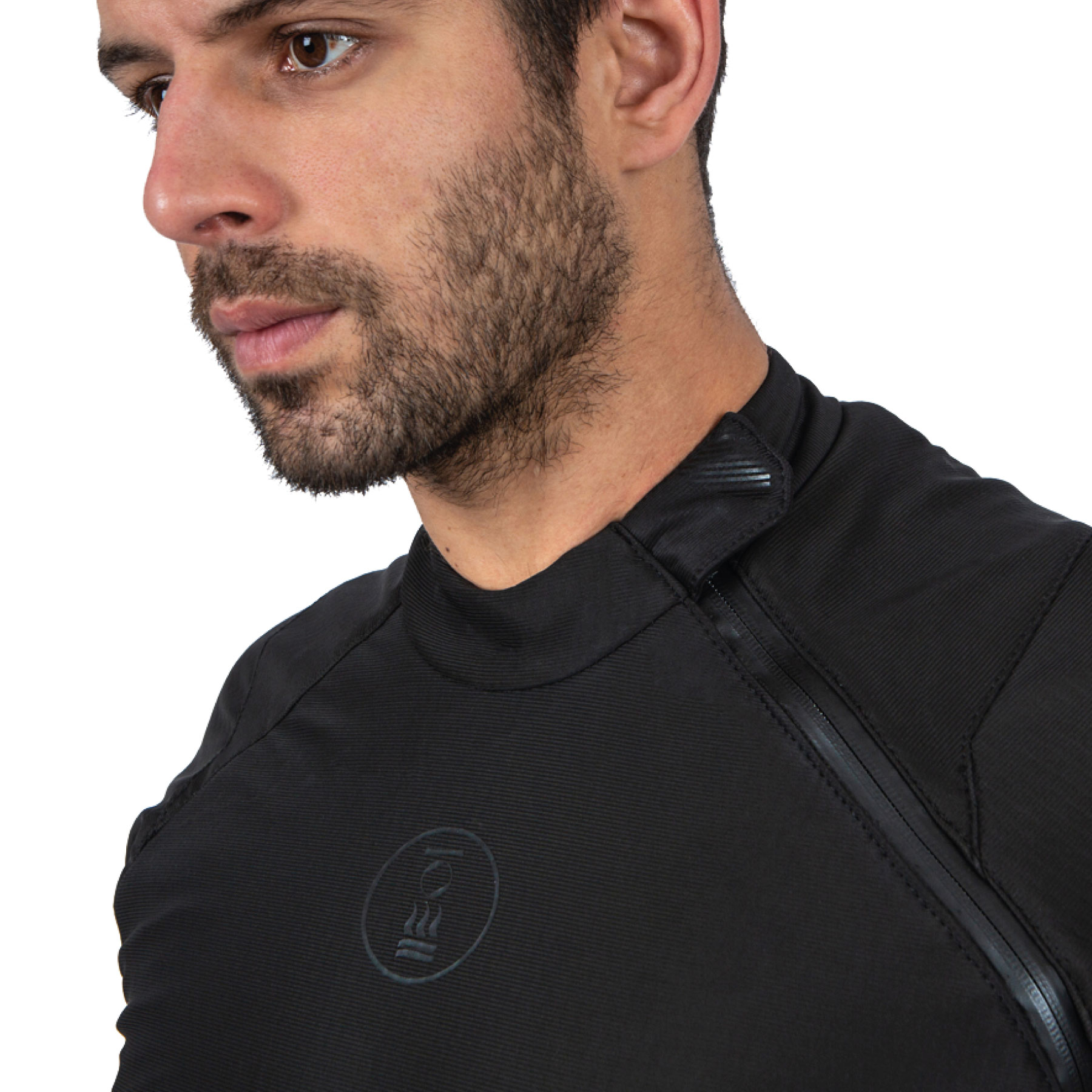 With phenomenal insulation properties, this material enables the Halo AR to achieve extreme thermal protection from a thinner, less buoyant diving undersuit. With a wind and water-repellent stretch outer layer, comfortable thumb loops and foot stirrups, this is a garment which can be worn in total comfort, all day.
