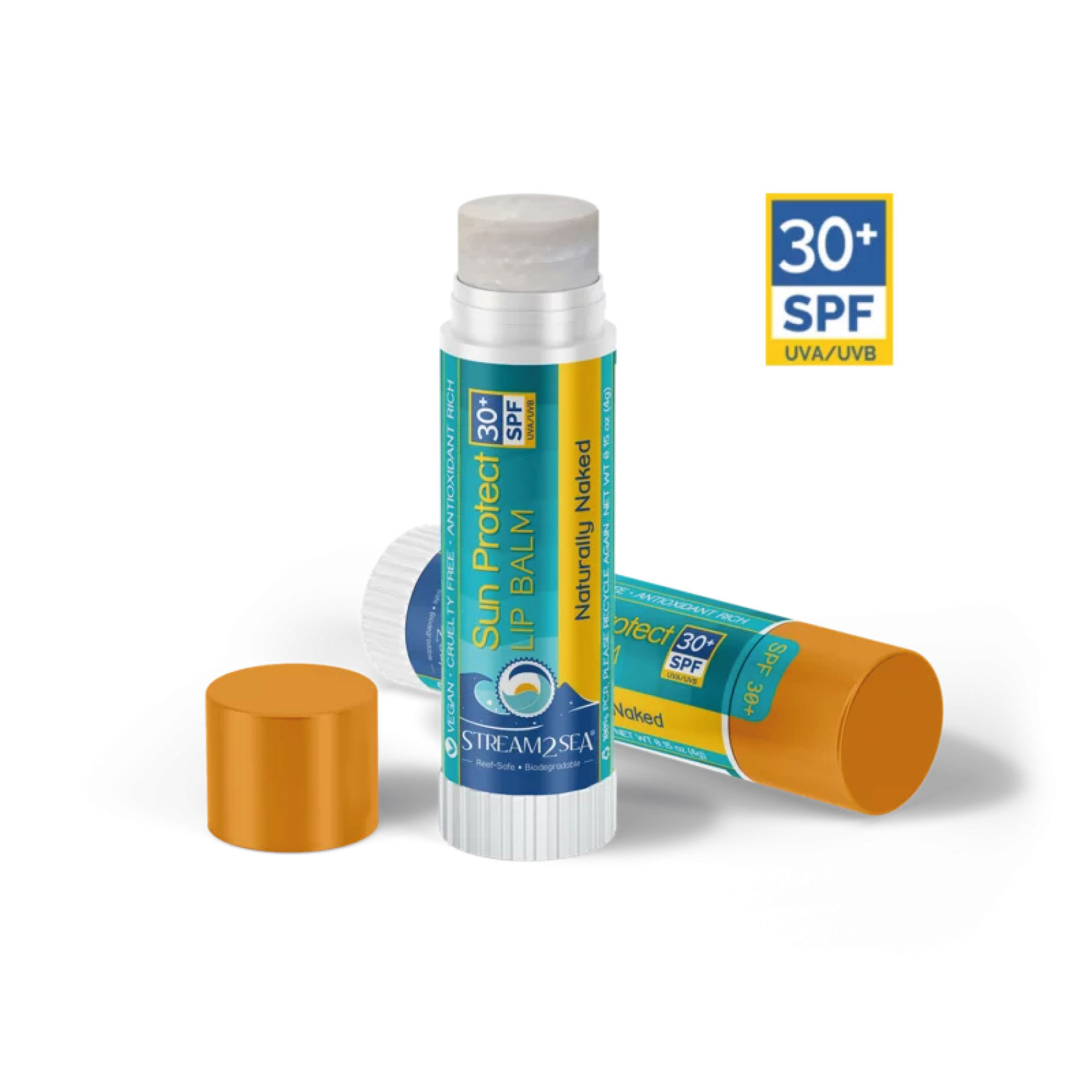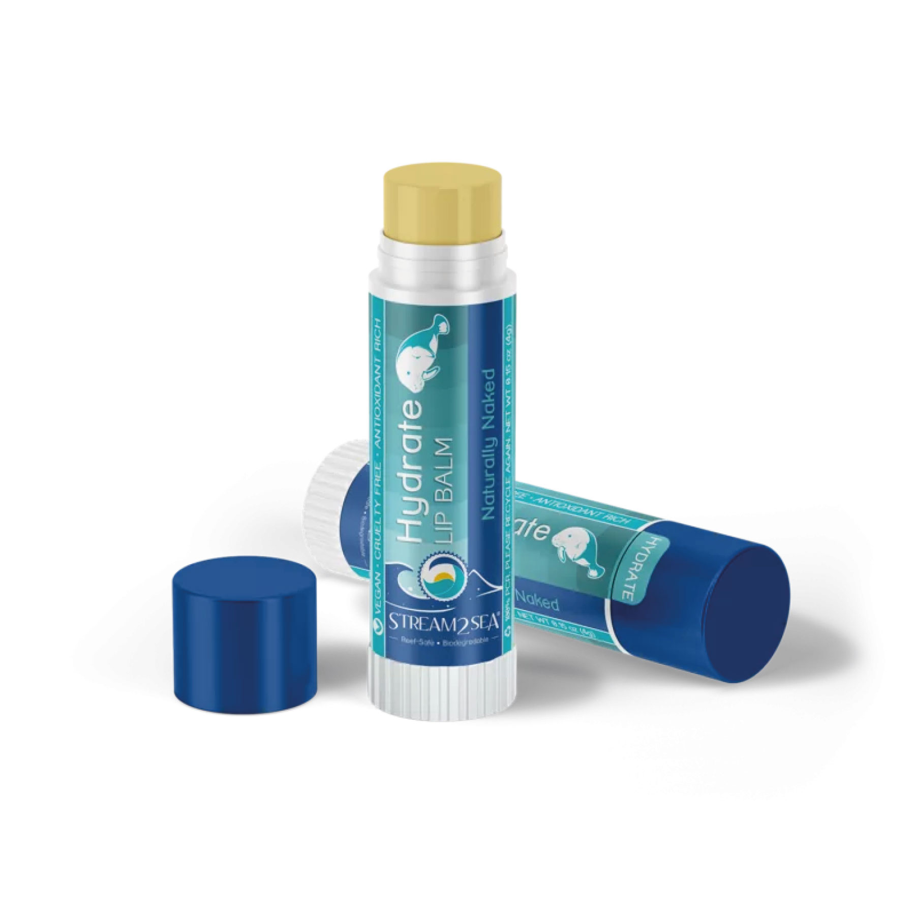 Discover the dual benefits of the Stream2Sea Vegan Lip Balm for Divers. Choose between the Naturally Naked Hydrate Lip Balm for everyday hydration and the Broad-Spectrum UVA/UVB Mineral SPF 30+ Protection version for sun-exposed activities. Both options utilize our Organic potent antioxidant blend of Hemp Oil, Green Tea, Tulsi, Wakame, and Olive Leaf, providing nourishment and safety for you and the environment.