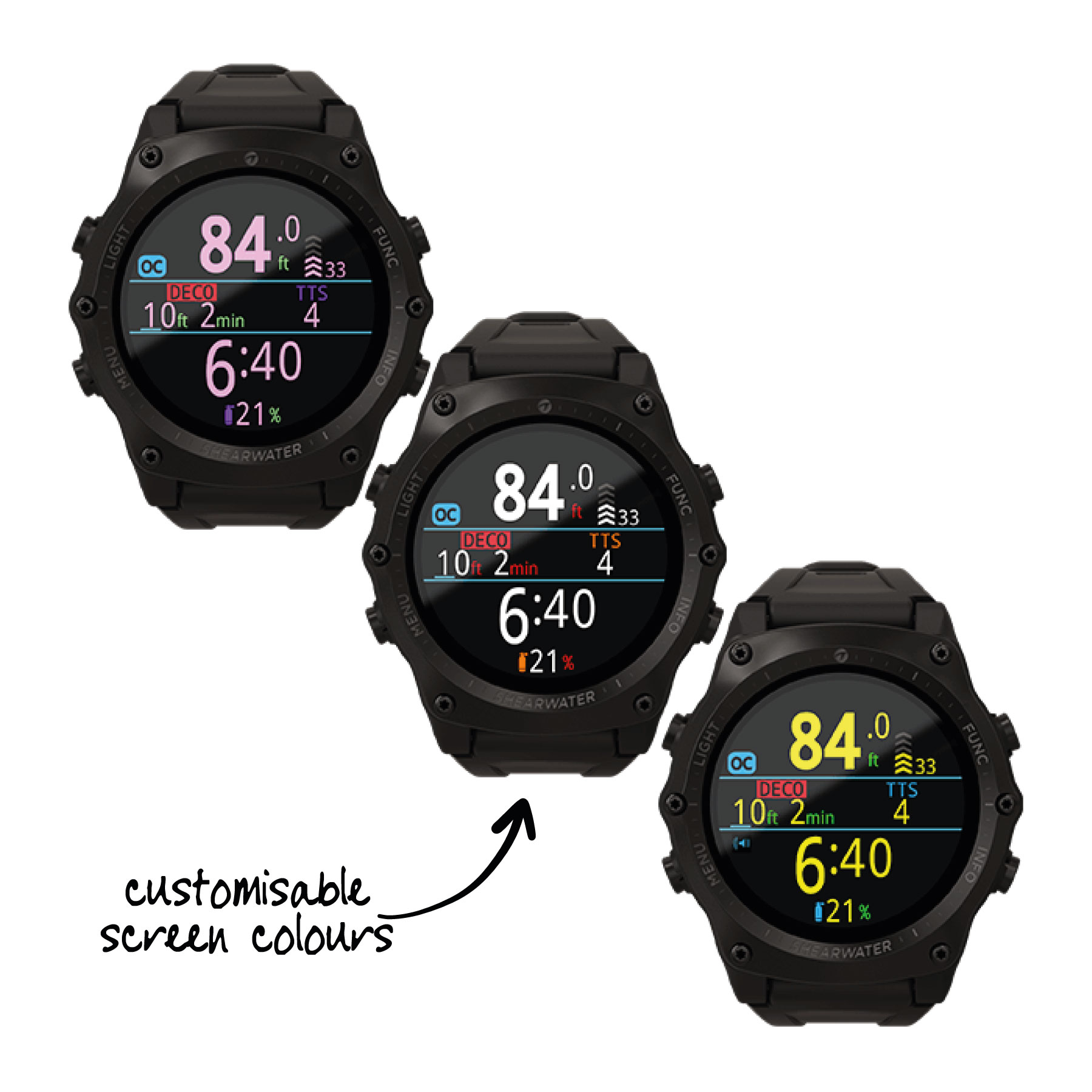 Intuitive controls and menu navigation along with a bright, vivid colour display. With a high degree of customization, the Shearwater Teric brings divers a timepiece and dive computer of unprecedented capabilities.
