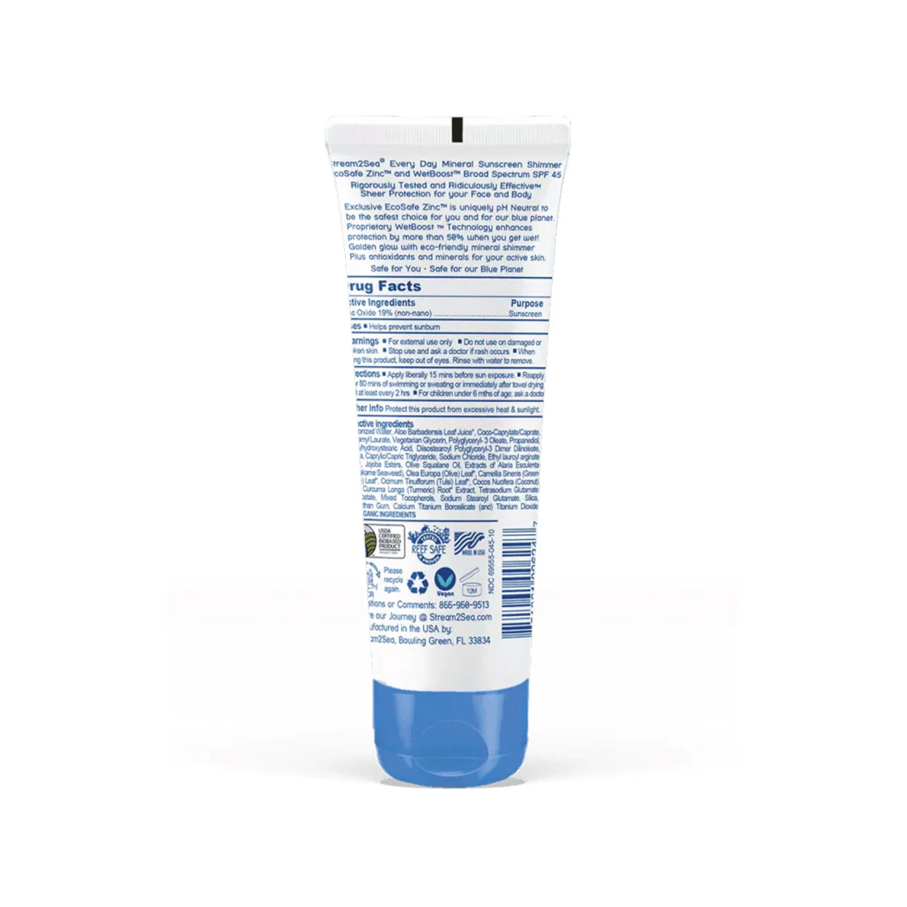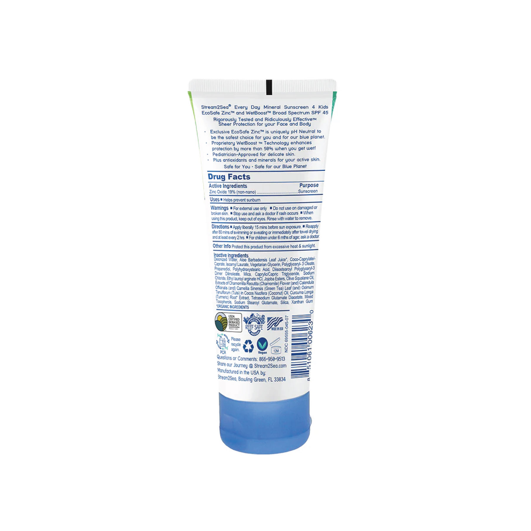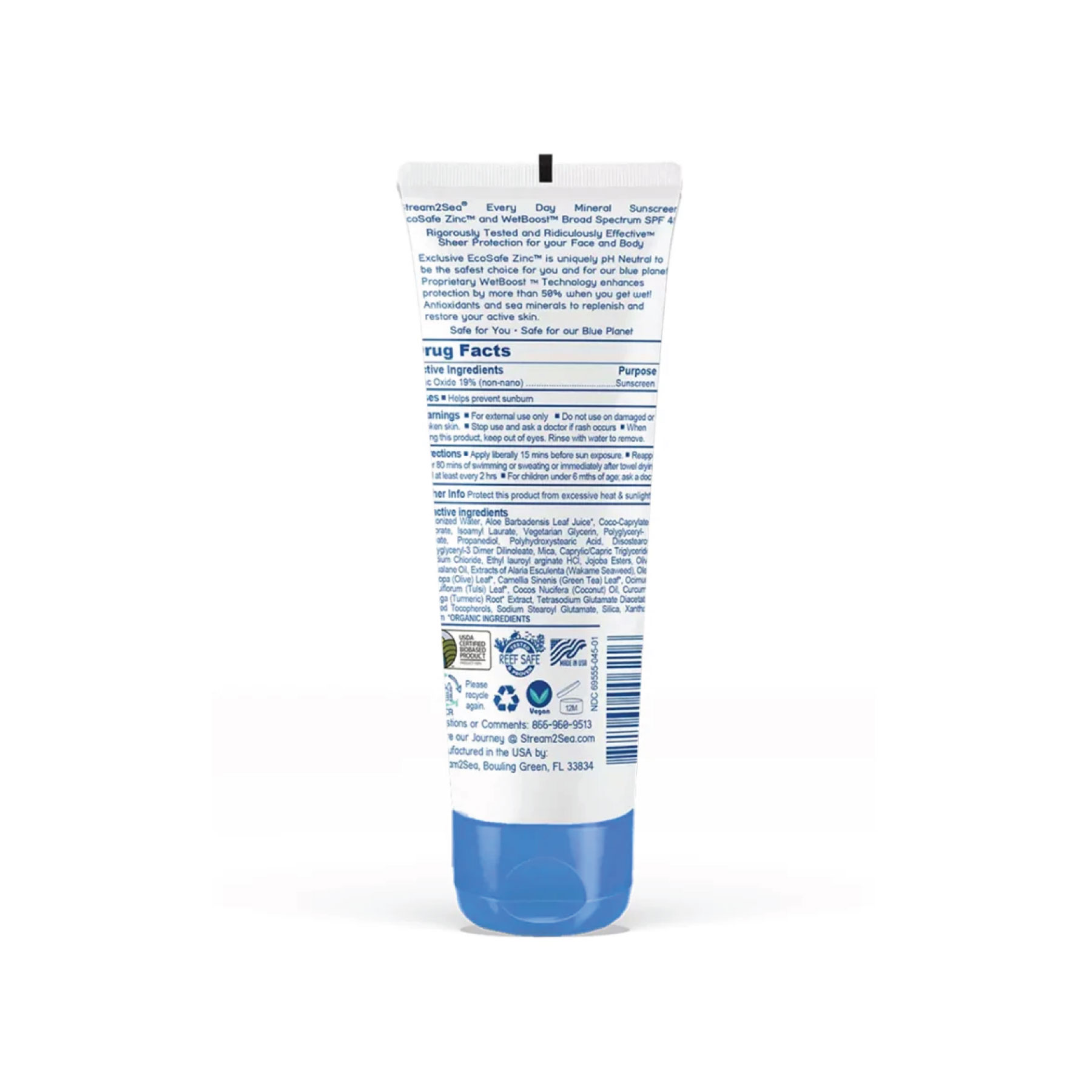 - Broad-Spectrum Protection: The Stream2Sea Every Day Reef Safe Sunscreen offers SPF 45 protection, defending against both UVA and UVB rays. This ensures comprehensive coverage to prevent sunburn and long-term skin damage.