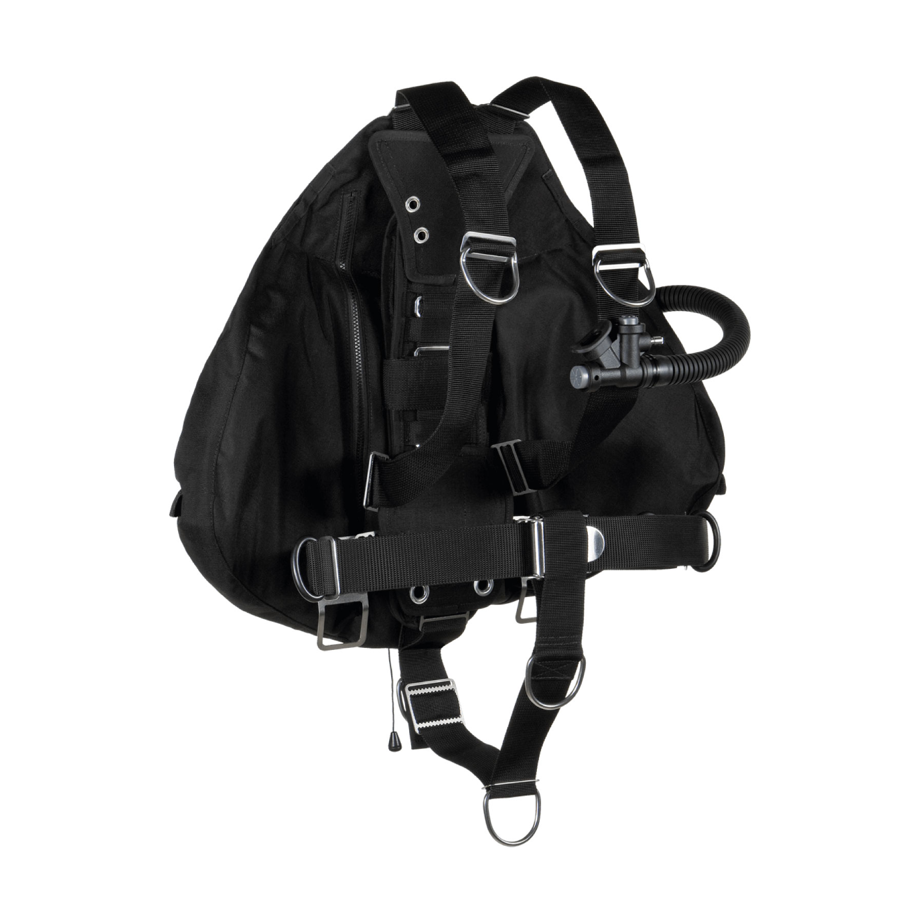Unlike single-piece harnesses the XDEEP Stealth Tec Sidemount Setup has independent adjustment of the shoulder and waist straps. Changing the shoulder strap length does not change the waist D ring positions. The crotch strap is an independent adjustment. It is fast and simple to obtain the perfect fit and configuration for multi-cylinder diving.