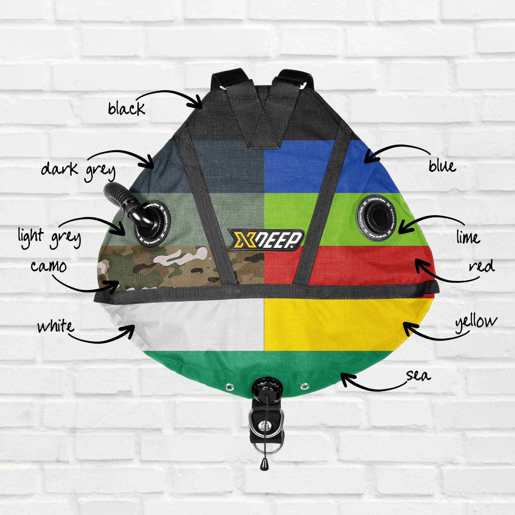 If you want cusomise your colours even further or add some embroidery to your XDEEP Stealth Tec Sidemount setup, you can use XDEEP’s customisation tool to get everything perfect, then send your design PDF to Jim to sort out the rest.