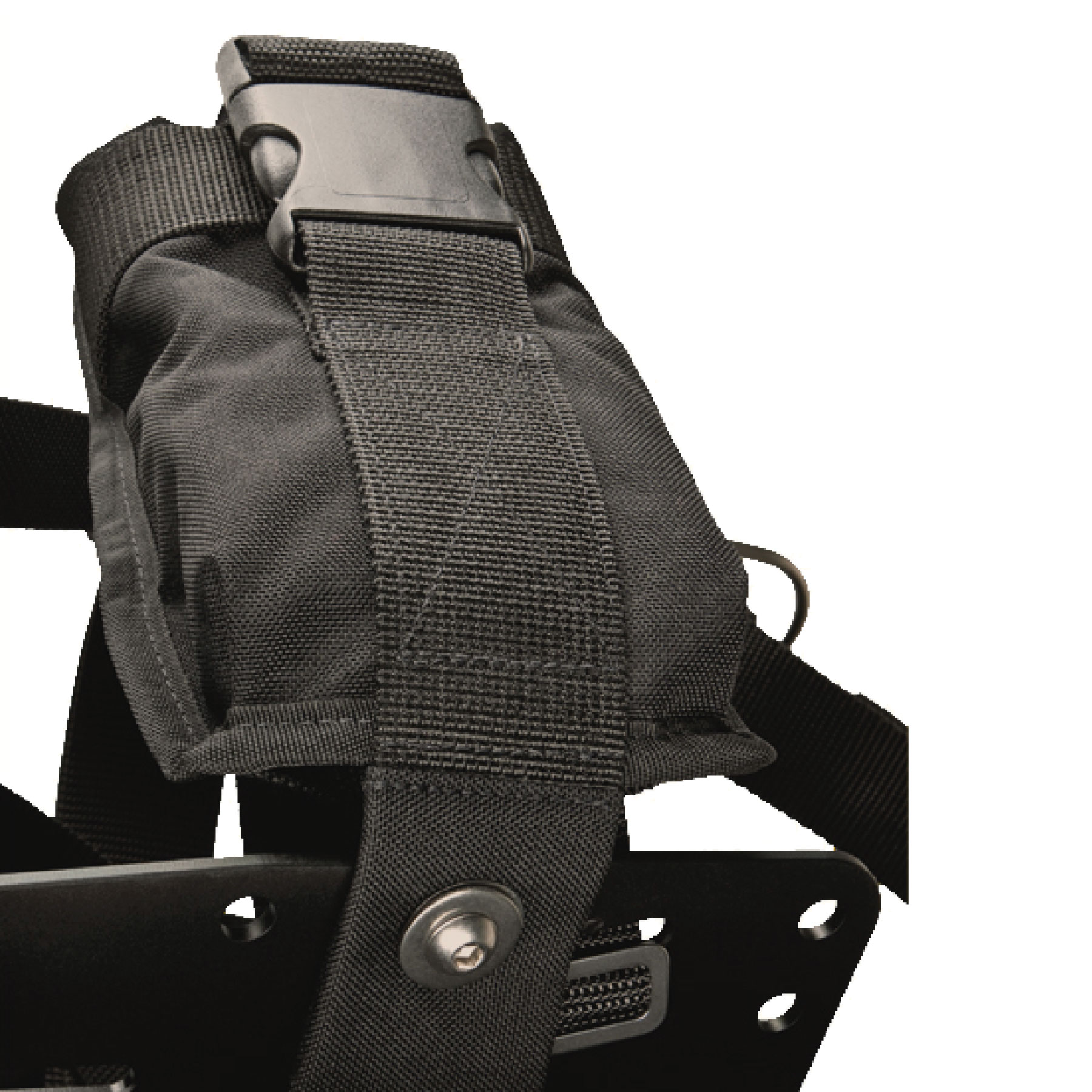 The XDEEP weight pockets slide onto your webbing and bolt into the backplate making it really comfy and stable. The weights themselves live in pouches which then slide into the system, secured with a buckle so ditching them super fast and easy.